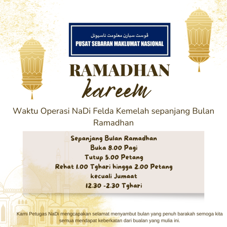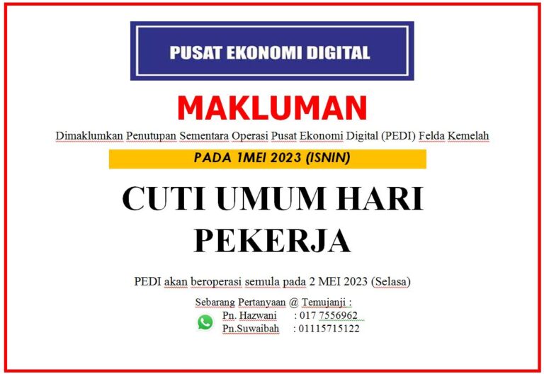 PENGUMUMAN Pusat Internet Felda Kemelah telah mula beroperasi mengikut SOP yang telah ditetapkan pada 28 Mei 2020 (Rabu) melalui sistem temujanji.Untuk maklumat lanjut sila rujuk Garis Panduan Pengguna Pusat Internet Semasa Tempoh Perintah Kawalan Pergerakan Bersyarat (PKPB) […]
