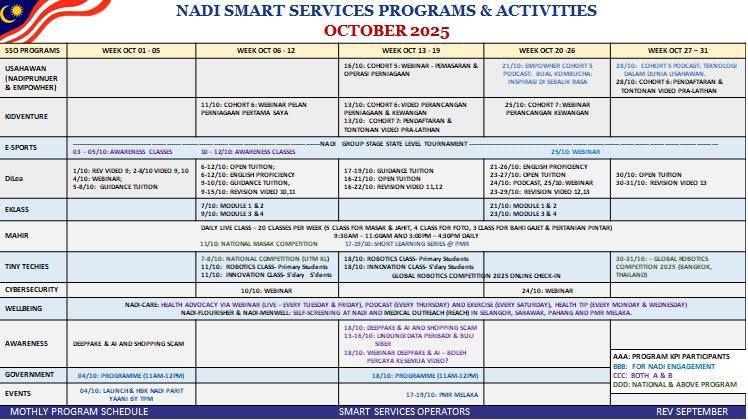 📣 Jadual Aktiviti Pusat Sebaran Maklumat Nasional (NADI) Felda Kemelah – Oktober 2025 📢