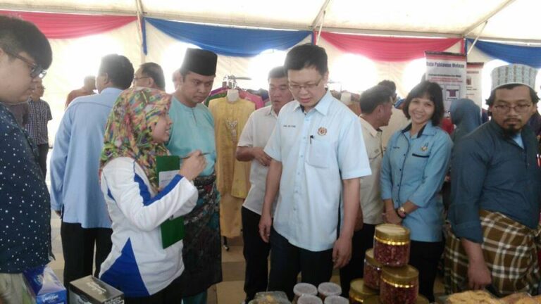 Petugas memberi penerangan kepada mengenai Pi1M kepada tetamu vvip ketika di karnival kraf labis