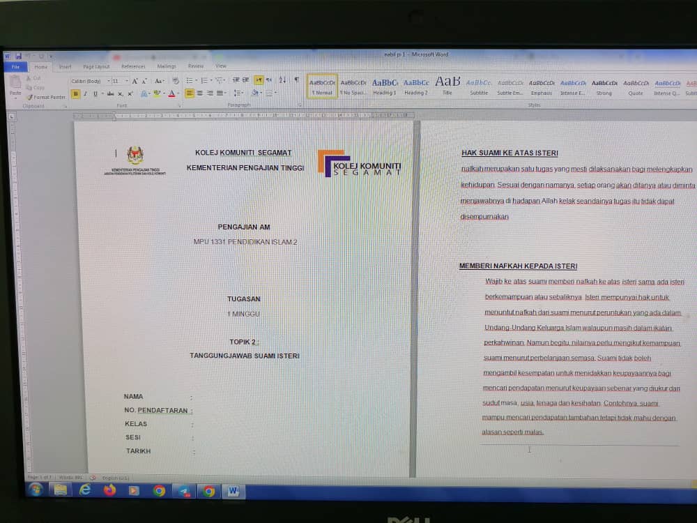 Kelas MS Word (menyiapkan assignment)